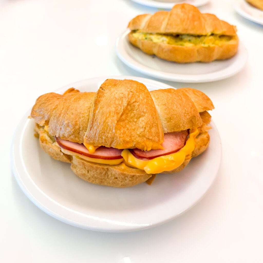 Delicioso bem servido Croissant Crocante de massa folhada bem recheado com Peito de Peru Defumado e Queijo Cuia. Uma Verdadeira Delícia!
